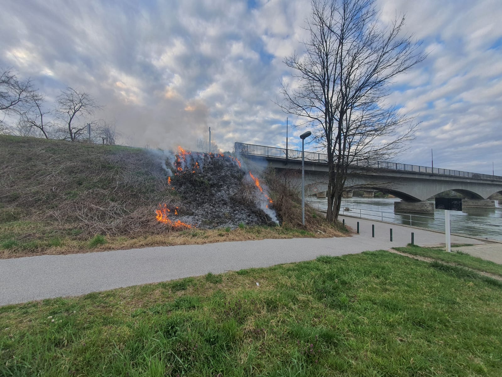 Požar koji je iznenada izbio uz rijeku Dravu sa varaždinske strana pored mosta hrvatskog bana Josipa Jelačića točnije uz željenički most je uspiješno ugašen. Na svu sreću spriječeno je njegovo daljnje širenje zahvaljujući našem čitatelju koji je reagirao na vijeme. Uzrok požara za sada je nepoznat.