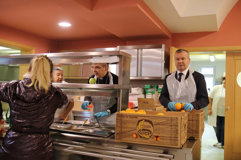 Varaždinski biskup mons. Bože Radoš i ove je godine uoči Božića posjetio Pučku kuhinju Caritasa Varaždinske biskupije te se, zajedno s gradonačelnikom dr. sc. Nevenom Bosiljem, predsjednikom Gradskog vijeća Lovrom Lukavečkim, županom Anđelkom Stričakom i volonterima iz Udruge Bedem ljubavi pridružio podjeli paketa korisnicima i zajedničkom blagovanju ručka.