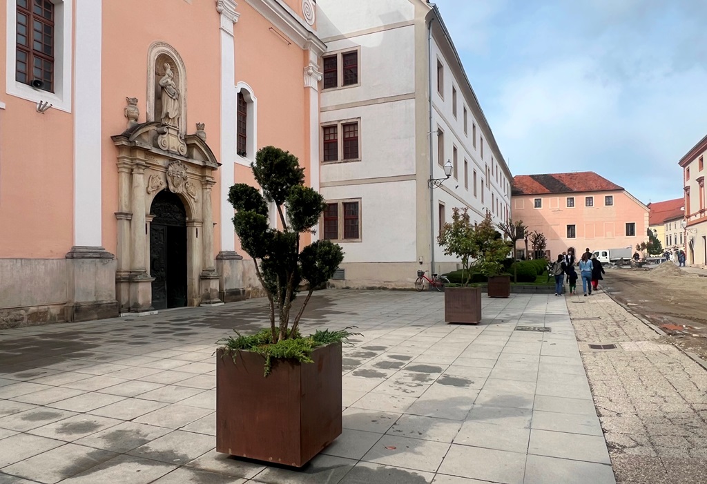 Pažljivo i planski provodi se zamjena dotrajalih drvenih žardinjera, koje su zbog vremenskih uvjeta i intenzivne uporabe podložne bržem propadanju. Corten se pokazao kao izuzetno prikladan materijal i sve češće se koristi u europskim gradovima u obliku urbanog mobilijara zbog svog modernog i prirodnog izgleda, minimalne potrebe za održavanjem, otpornosti na koroziju i dugi vijek trajanja, a Grad Varaždin aktivno prati europske trendove u urbanom krajobraznom dizajnu.