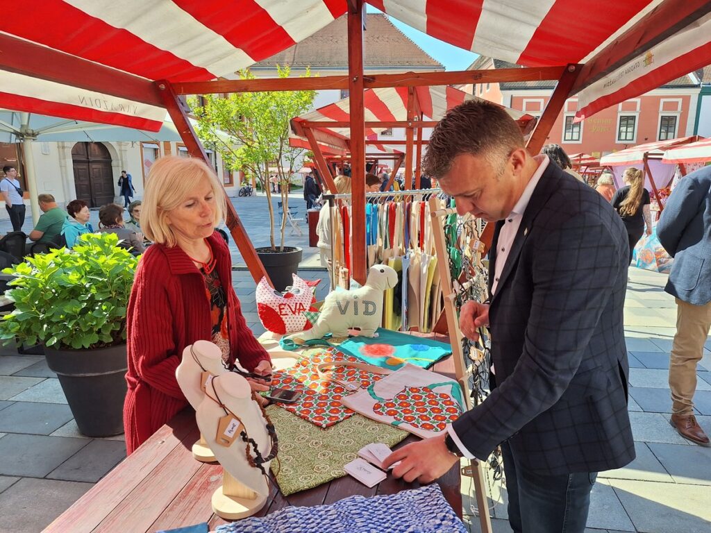 Varaždinski obrtnici su u subotu prijepodne na štandovima prezentirali rad svojih vrijednih ruku – suvenire, personalizirane poklone, ručno rađeni nakit, tekstilne rukotvorine, licitarske proizvode, igračke izrađene od pamučnog konca, mirisne svijeće, domaće čajeve i sokove, voćne likere i rakije, proizvode od pira, heljde, buče, raži i kukuruza, ekološku kozmetiku, ukrase za kosu, proizvode od drva, ručno pletene torbe, umjetničke slike, knjige, kovane proizvode i mnoštvo drugih vrijednih proizvoda koje su obrtnici ponudili po popularnim cijenama.