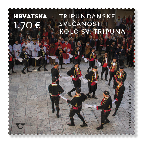 Hrvatska pošta danas stavlja u optjecaj nove prigodne poštanske marke iz serije Hrvatska nematerijalna kulturna baština – UNESCO. Ovaj put motivi na markama su kolo svetog Tripuna i sokolarenje (sokol Vitolda Košira). Autor izdanja je Orsat Franković, dizajner iz Zagreba, dok su autori fotografija Nedim Polovina i Petra Ana Čubelić, fotografi također iz Zagreba. Naklada iznosi 25.000 primjeraka po motivu, a marke su izdane u arčićima od 8 maraka. Nominalna vrijednost svake pojedinačne marke iznosi 1,70 eura. Izdanje, koje prati i prigodna omotnica prvoga dana (FDC), dostupno je u poštanskim uredima i na www.epostshop.hr.