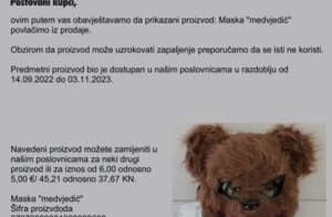Iz svoje ponude i “masku medvjedić” jer može uzrokovati zapaljenje, prenosi dnevnik.hr