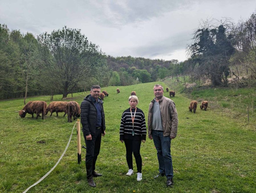Obzirom da uzgoj škotskog goveda postaje sve više popularno i u našim krajevima te privlači sve više pažnje, župan Anđelko Stričak je u pratnji pročelnika Upravnog odjela za poljoprivredu i zaštitu okoliša dr.sc. Dragutina Vinceka posjetio imanje te se uvjerio u aktivnosti i rad obitelji koja se osim uzgojem škotskog goveda bavi i uzgojem fajferica, crnih slavonskih svinja.