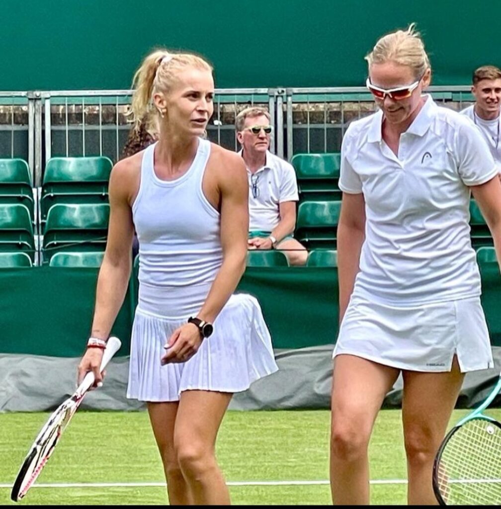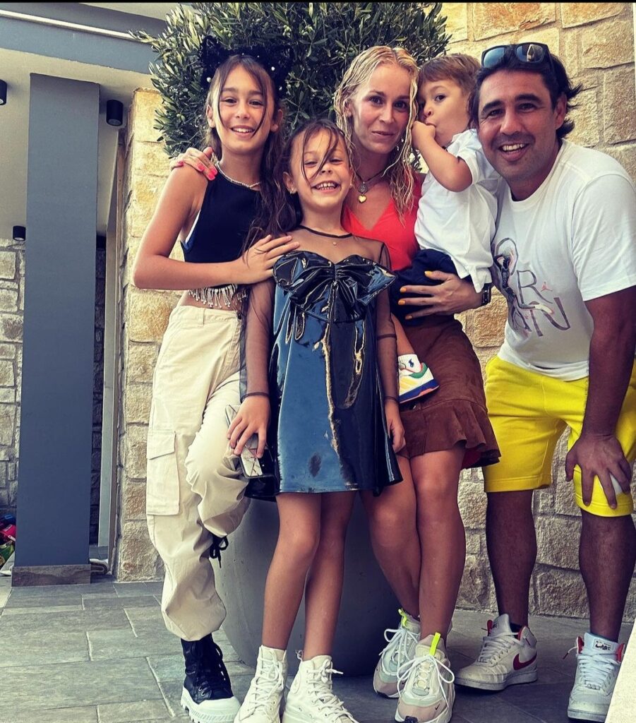 U sportskom izdanju, ali savršeno dotjeranu, prepoznali smo sjajnu tenisačicu Karolinu Šprem Bagdhatis koji više profesionalno ne igra tenis već se sa suprugom, legendarnim tenisačem Marcosom Baghdatisom, vodi tenisku akademiju na Cipru. Roditelji su dvije prekrasne djevojčice Zahare i Indije te 4 – godišnjeg sinčića Zeusa.