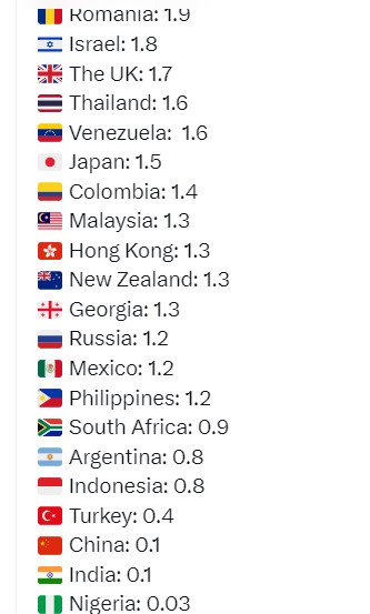 Posljednje mjesto na ovoj listi zauzima Nigerija s 0,03 kilograma kave.
