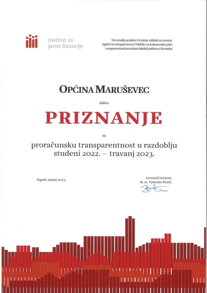 -Ovo peto Priznanje Općini Maruševec od strane Instituta za javne financije ne znači da samo objavljujemo potrebne proračunske dokumente, već da se, između ostalih, pridržavamo i Zakona o proračunu, Zakona o pravu na pristup informacijama i preporuka Ministarstva financija, što prema istraživanju i dalje nije slučaj u svim jedinicama lokalne i regionalne samouprave u Hrvatskoj. Veseli i ovogodišnja „petica“ no moram istaknuti kako je potpunu transparentnost Općina Maruševec postigla prošle godine kada smo omogućili građanima kroz web-aplikaciju uvid u isplate iz općinskog Proračuna. Građani imaju pravo znati na što se ulažu općinska sredstva, a vlast koja pošteno radi nema što skrivati, istaknuo je tom prilikom načelnik Općine Maruševec Mario Klapša.