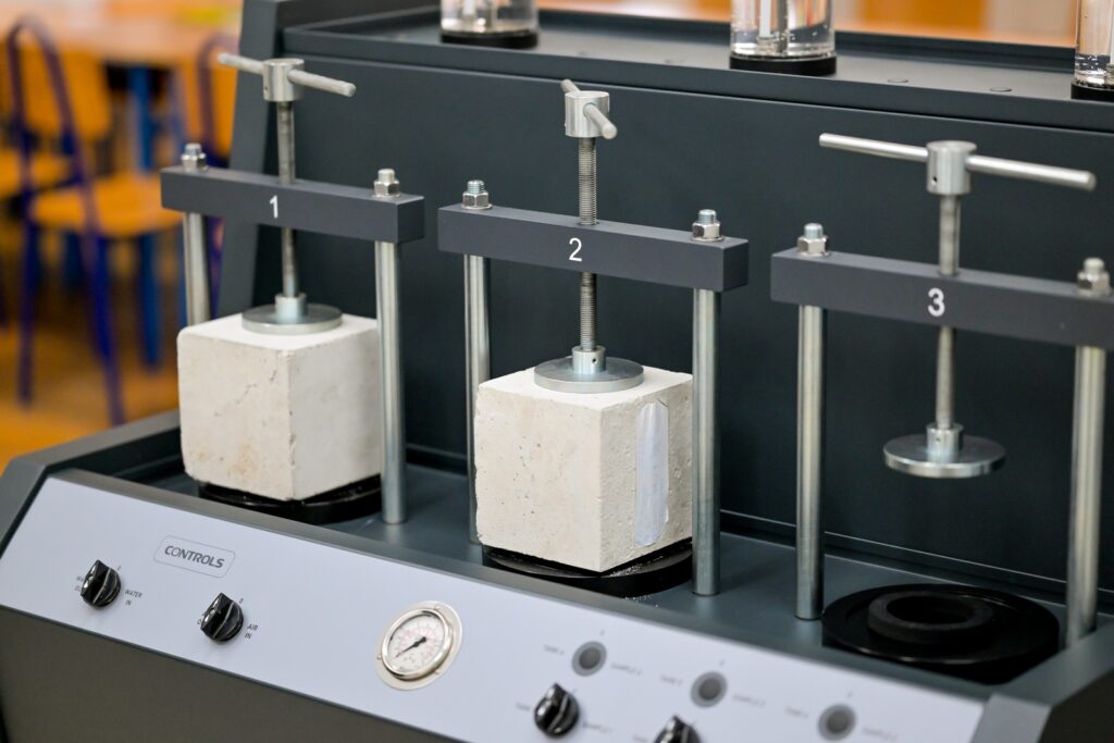 Novi laboratorij opremljen je suvremenim uređajima — termostatom, prešom, sušionikom, sklerometrom, miješalicom, sitima i drugom pripadajućom opremom — čime će se učenicima omogućiti moderna i interaktivna nastava u skladu s najnovijim standardima u graditeljstvu.